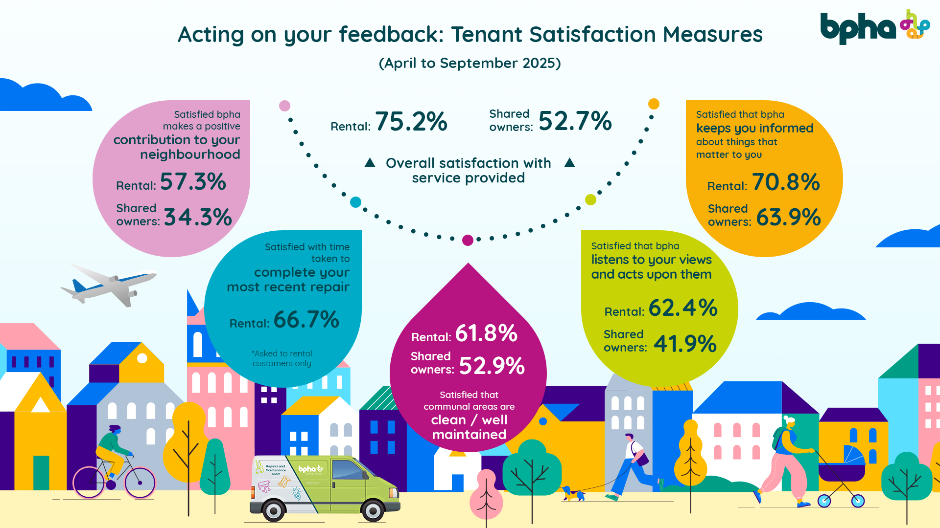 In 2023 the Regulator for Social Housing introduced the Tenant Satisfaction Measures (TSMs). The results are one of the important ways that will help us understand your experiences of bpha and make improvements as a result.