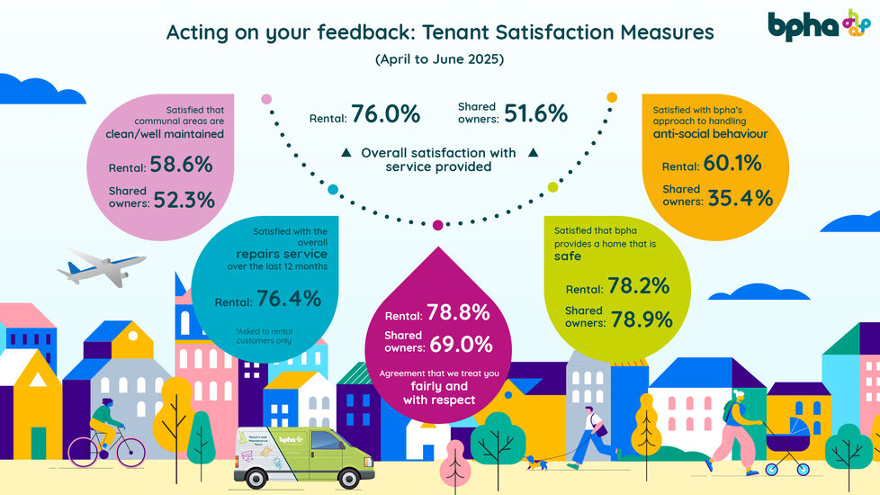 Your latest Tenant Satisfaction Measures (TSMs) feedback is here - and we’re pleased to report that more customers are satisfied with our services compared to the 2024 – 2025 ‘end of year’ results, with an increase of 4.2% for rental customers and 5.7% for homeowners. It’s your continued feedback that has helped us achieve this – and it continues to play a vital role in helping us improve.