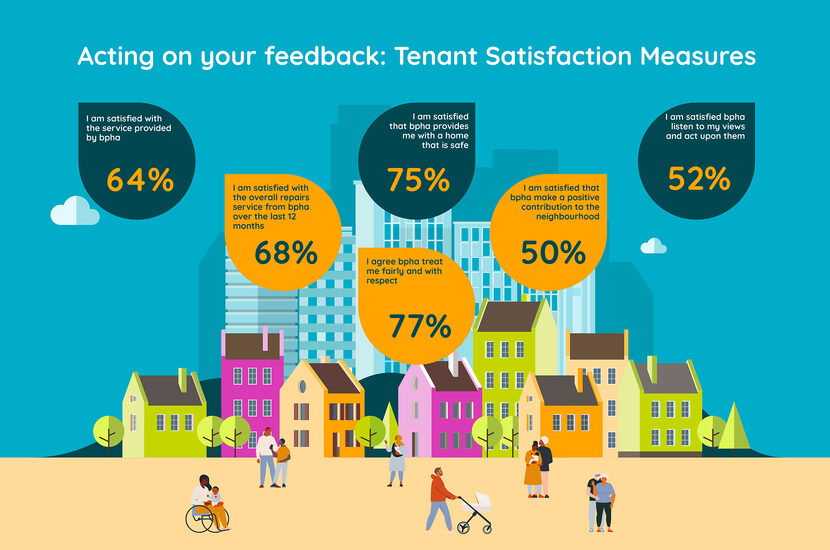 There are 22 tenant satisfaction measures, covering five themes. 12 of the 22 are measured by carrying out customer surveys that will tell us how satisfied you are with the services we provide.